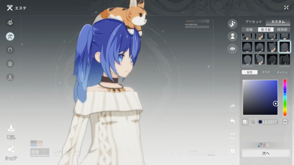 エステについては、前髪や後ろ髪の選択肢が増え、全体的にバリエーションも少しだけ広がっています。