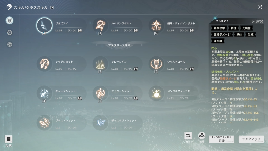 スキルのレベルアップにはルーノ(ゲーム内通貨)、ランクアップには専用の本が必要となり、誰でも気軽に強化できる仕組みになっています。