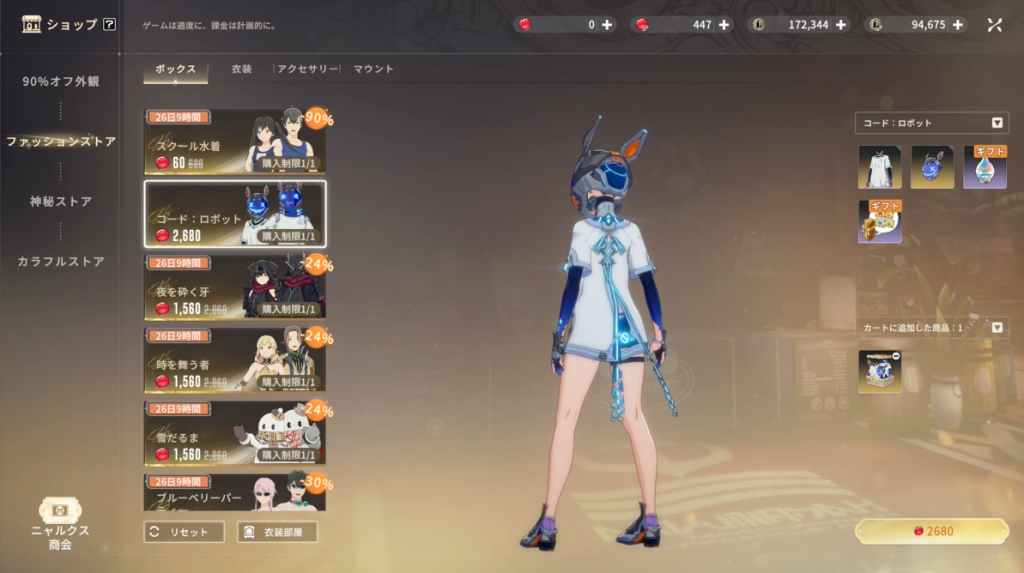 ファッションについては買い切り商品も用意されており、微課金の方には嬉しい仕組みだと思います。