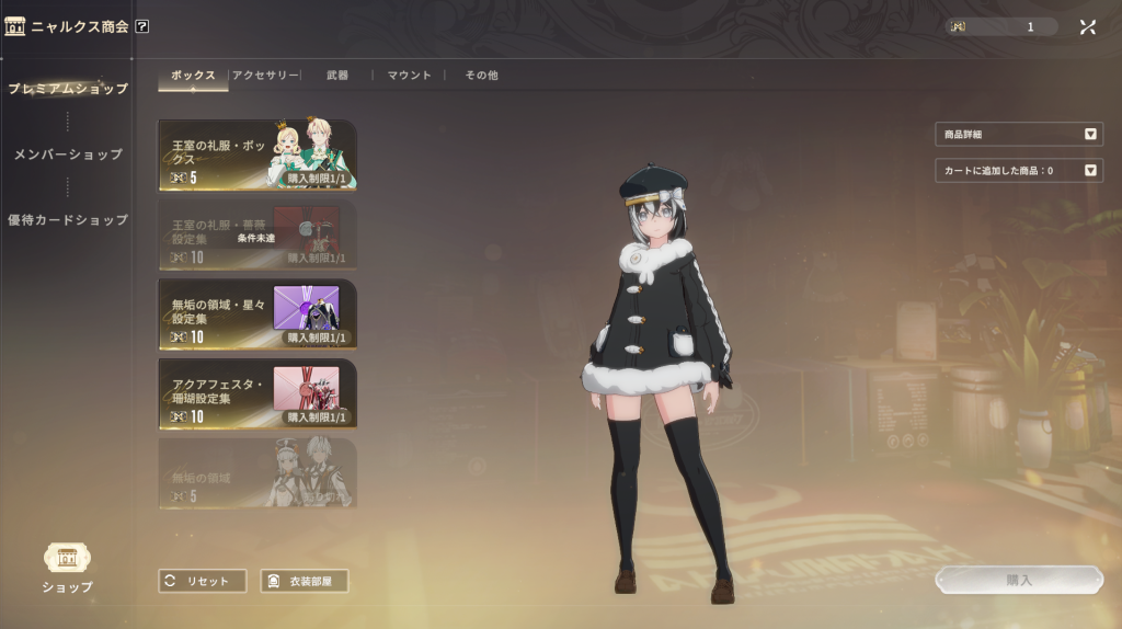 ただ、「ニャルクス商会」に並んでいる衣装が欲しい場合は、少し闇鍋要素があります。