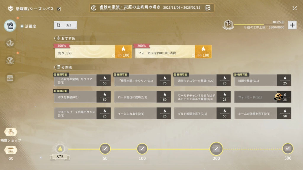 シーズンパスについては、他のゲームと同様にタスクをこなして進めていく形式になっています。